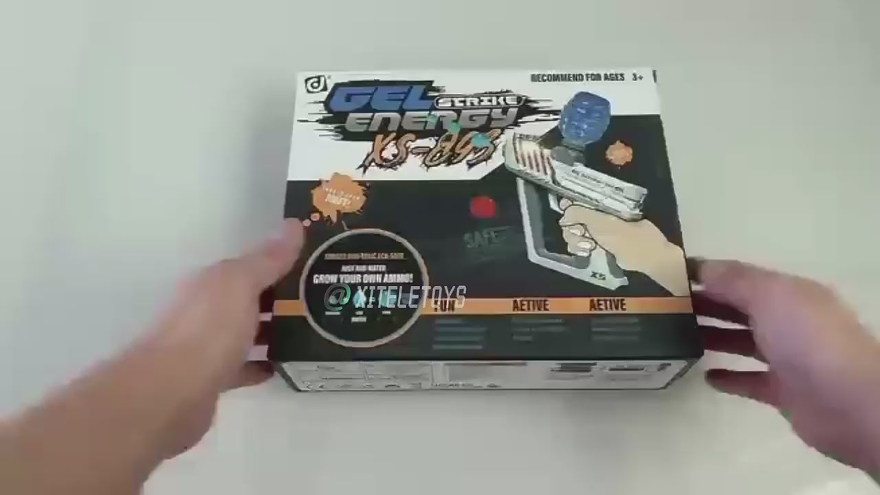 Gelblasteris, gel blaster, įkraunama baterija, baterijos pakrovėjas, gel burbuliukš dėtuvė, gel burbuliukų dėtuvės jungtis, apsauginiai akiniai, 1000vnt gelinių burbuliukų. Ir kiti priedai matomi nuotraukoje.
