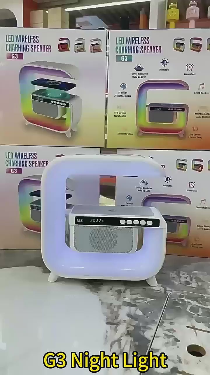 Led laikrodis-žadintuvas su kolonėle ir bevielio krovimo funkcija